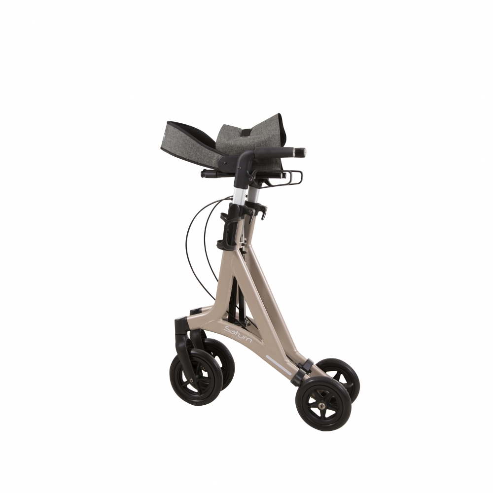 De Saturn rollator is een lichtgewicht design rollator met een moderne uitstraling. Door de extra zachte wielen kan zowel binnen als buiten comfortabel over iedere ondergrond gereden worden. De rollator is eenvoudig zijwaarts op te klappen waardoor deze weinig ruimte in beslag neemt.