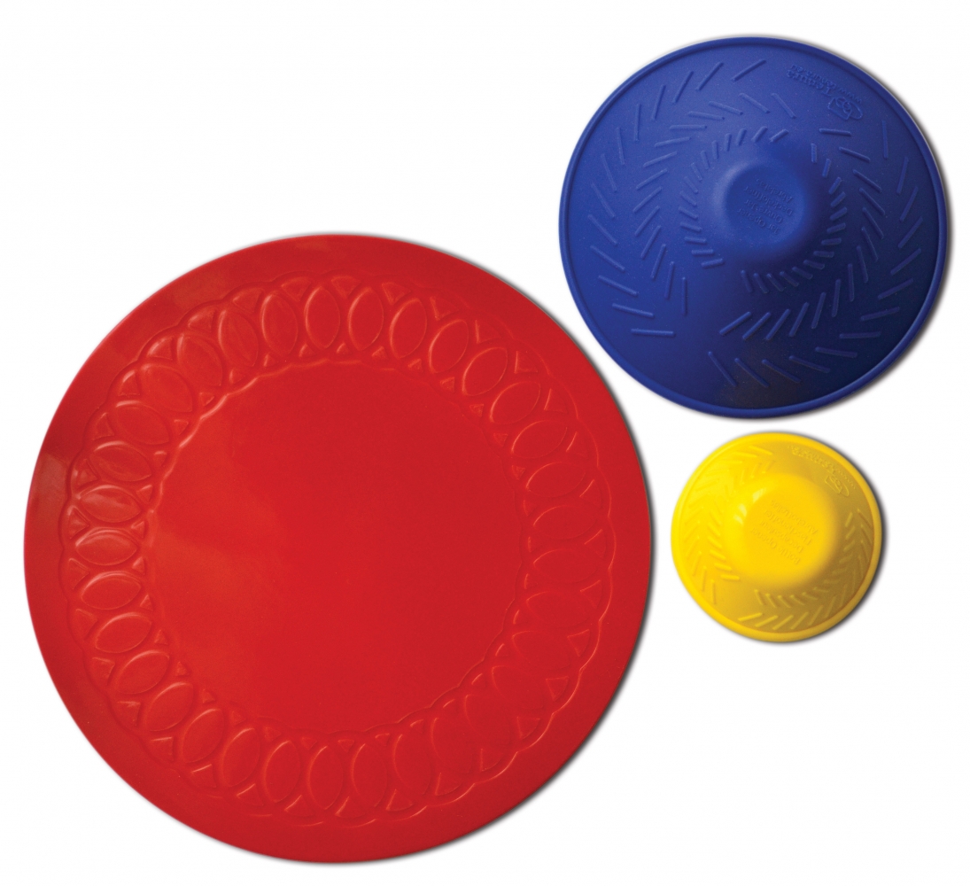Set van drie handige anti-slip hulpmiddelen voor een betere grip: anti-slip mat (diameter 19 cm), potopener en flesopener.