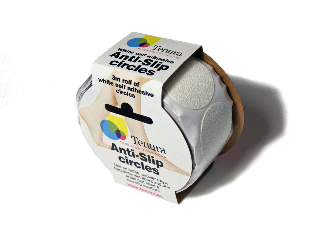 Deze zelfklevende anti-slip rondjes zijn speciaal ontworpen voor gebruik in natte ruimtes. Geschikt voor gebruik in bad, douche, badkamervloeren en andere oppervlaktes waar het regelmatig nat en glibberig wordt. Rol van 3 meter, 72 stuks. Diameter 4 cm.