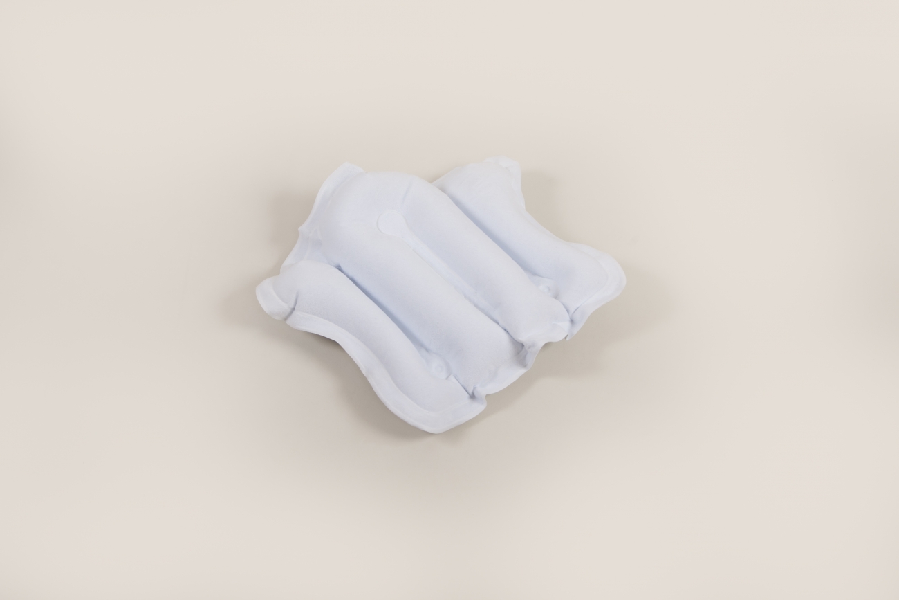 Opbaalsbaar PVC badkussen met badstofvoering. Geeft verzachting tussen het bad en de huid. Vier zuignappen zorgen ervoor dat het kussen niet wegglijdt.