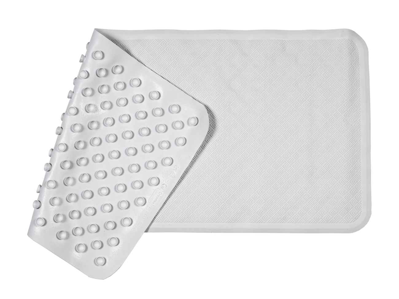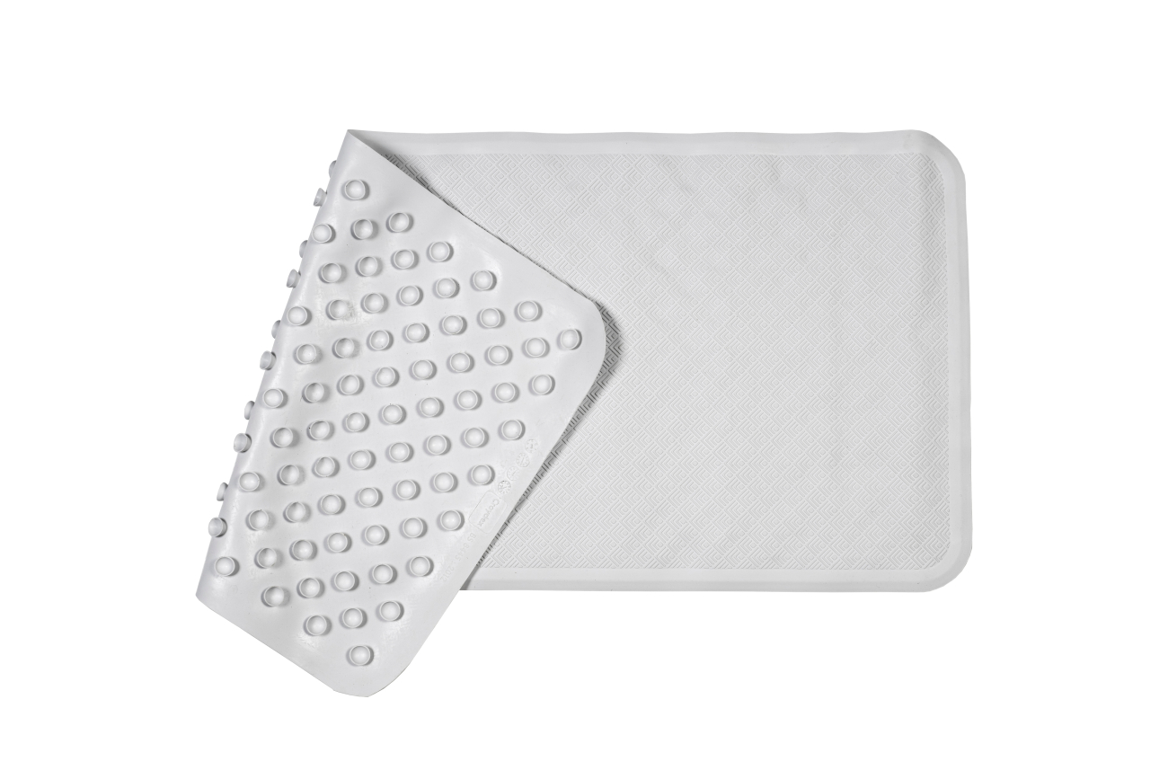 Deze rubberen badmat heeft een geribbeld oppervlak voor meer grip. De zuignappen zorgen ervoor dat de mat niet wegglijdt. Het water op de mat loopt vanzelf weg. Kan in de machine gewassen worden.