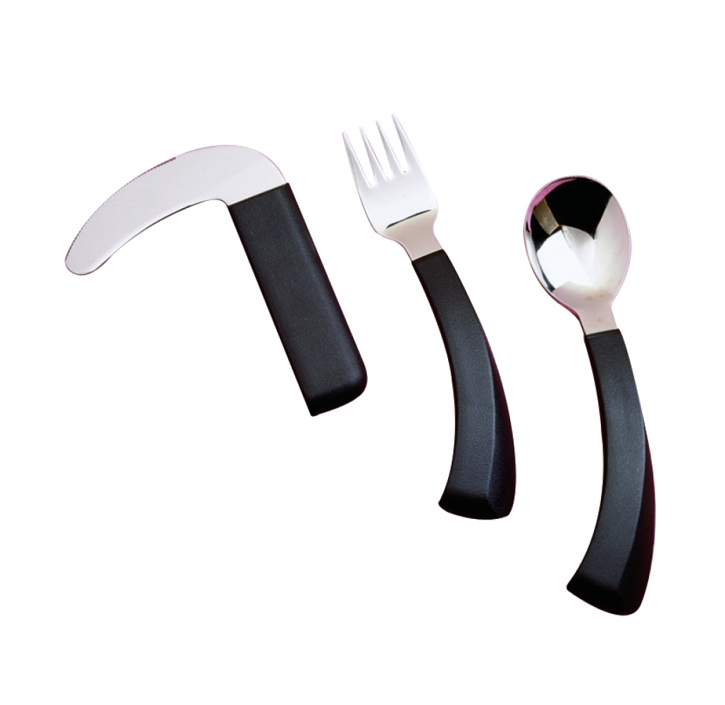 Amefa bestek is ideaal voor mensen met een beperkte hand en pols functie. Deze vork met gebogen, taps toelopende handvat ligt comfortabel in de hand. Voor linkshandig gebruik.