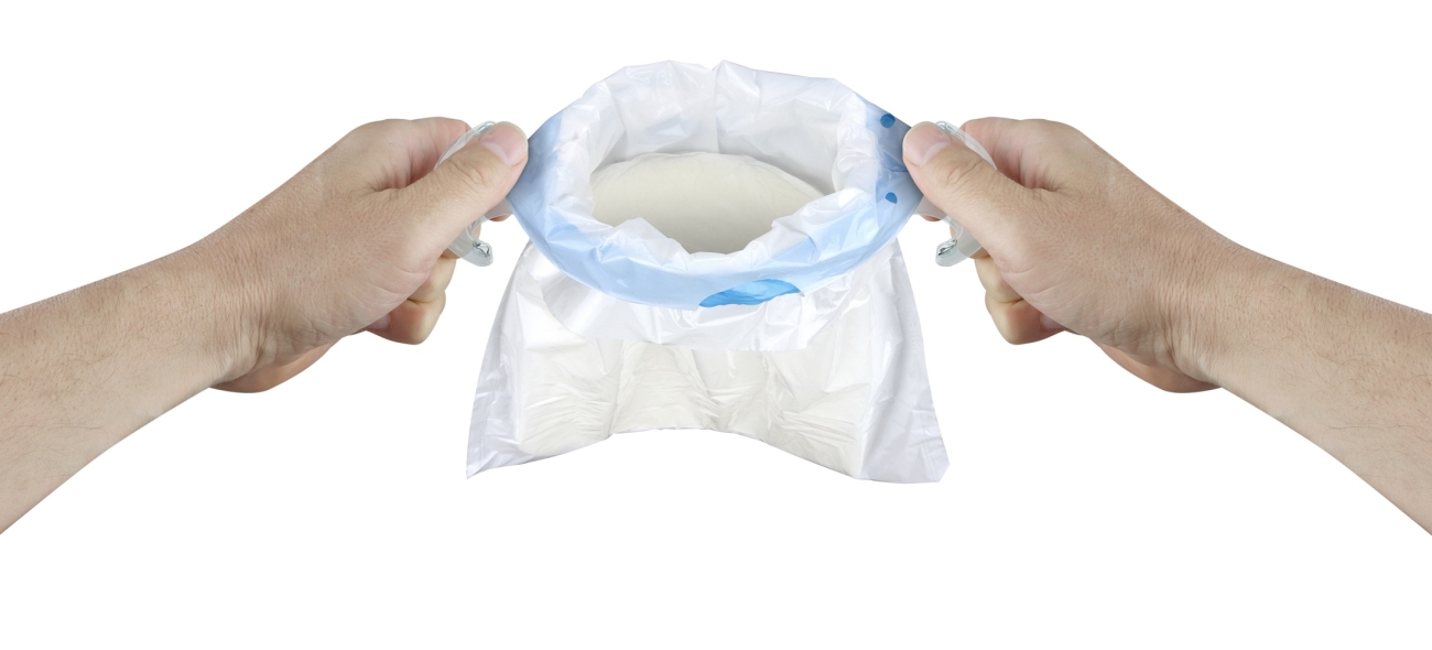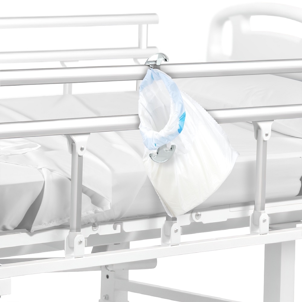 De houder is uitgerust met twee handvatten die het vasthouden van de opvangzak vergemakkelijken, zowel voor de gebruiker als voor de zorgverlener die hem of haar helpt. Deze handvatten zorgen er bovendien voor dat de opvangzakhouder aan het bed van de patiënt gehangen kan worden. Door het gebruik van de houder wordt spatten op de handen voorkomen, wat helpt om het risico op infecties te verminderen.