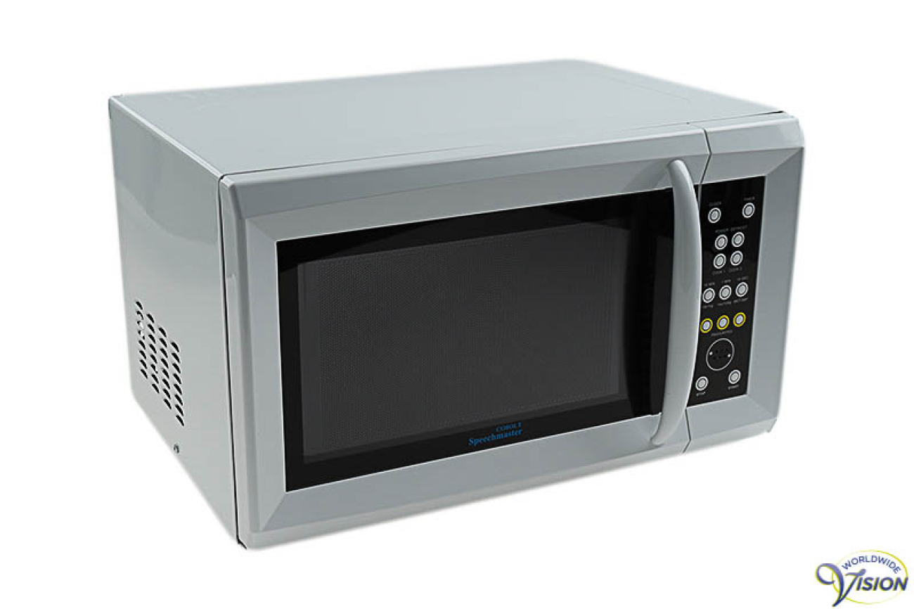 Magnetron Cobolt, Engelssprekend met een vermogen van 800 Watt (25 liter) en 3 voorkeurtoetsen voor de meest gebruikte programma’s. Een zeer groot aantal mogelijkheden: ronddraaiende plaat, voelbare toetsen, sprekende klok, instelbaar volume, sprekende kookwekker onafhankelijk van magnetron, basisfuncties vermogen en tijd instelbaar, programmakeuze bakken/ontdooien/ type voedsel en gewicht, instelbaar voor bevroren en niet bevroren voedsel, auto-minuut en programmeerbare pauzefuncties, sprekend verzoek voor roeren of draaien enz., sprekend advies deur open/dicht, sprekende bevestiging van functies en baktijden, resterende tijd opvraagbaar, eenvoudig te bedienen. Uitwendige afmetingen 510 x 280 x 370 mm, kleur wit.