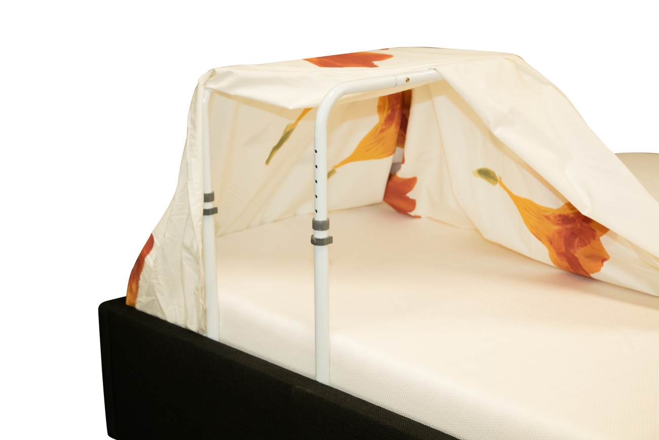 Deze metalen dekenboog met plastic coating voorkomt dat het gewicht van beddengoed op de benen of voeten rust. De basis van de dekenboog schuift u onder de matras. Het beddengoed plaatst u over het frame. Zo blijven benen en voeten vrij van druk.