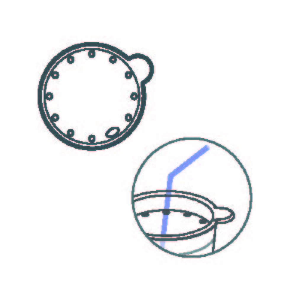 Drinken zonder te kijken? Geen probleem. Dit deksel heeft overal gaatjes en hierdoor kunt u vanaf iedere kant drinken, dus nadenken waar het drinkgat zit, is niet nodig. Bovendien zit het deksel verzonken in de drinkbeker en is hierdoor nagenoeg niet zichtbaar. Er kan ook een rietje gestoken worden door een apart gaatje. Gemaakt van onbreekbaar plastic (BPA vrij).