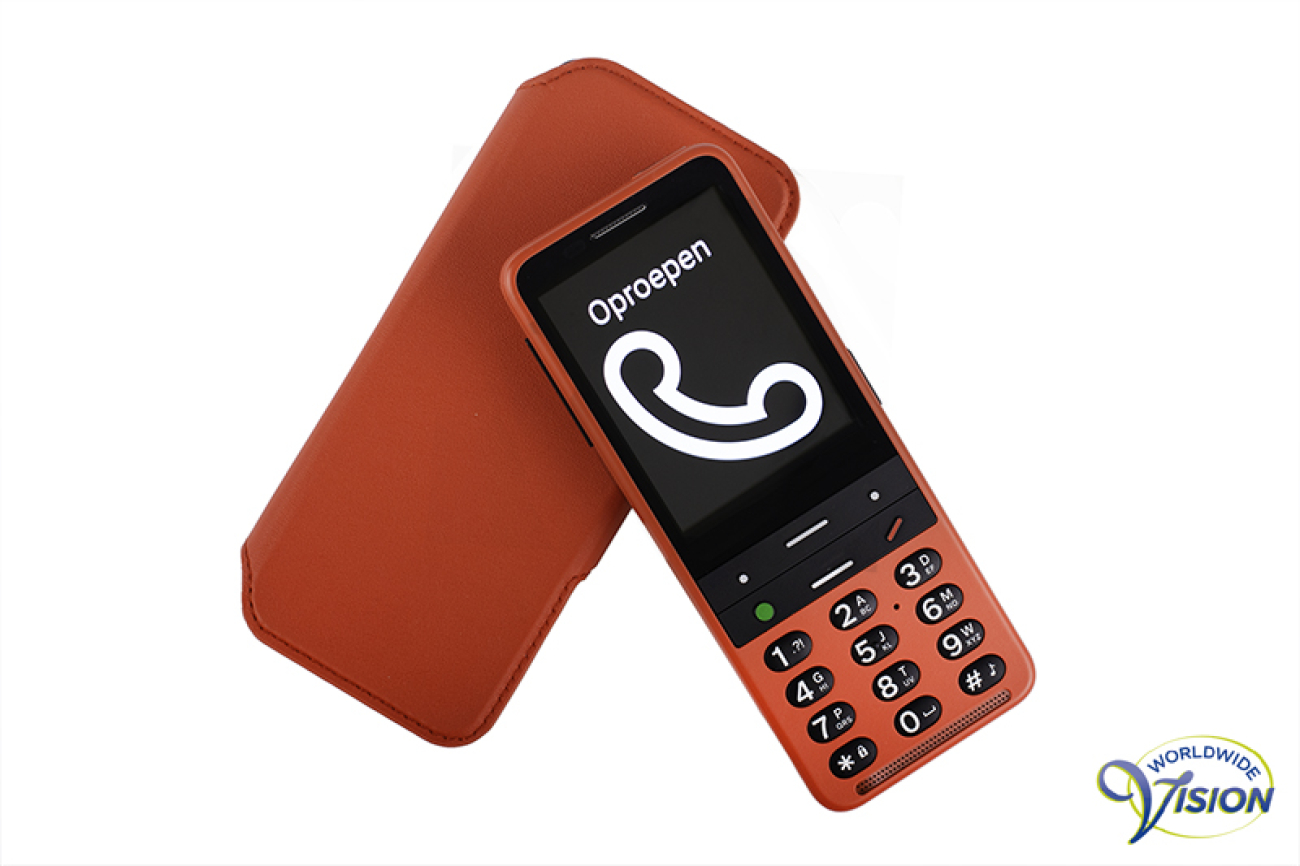 Flipcase van kunstleer model booktype voor BlindShell Classic2 met opbergvak voor pasje of briefgeld, kunststof binnenbehuizing en magneetsluiting, kleur rood.