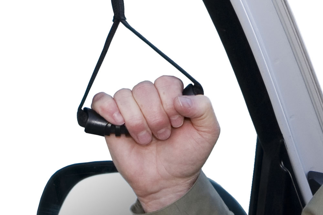Deze handgreep biedt extra ondersteuning bij het in en uitstappen van de auto. Eenvoudig het raam laten zakken en de nylon riem rond het portier bevestigen. Positioneer de verstelbare handgreep op de juiste plaats en hoogte. Anti-slip rubberen handvat.