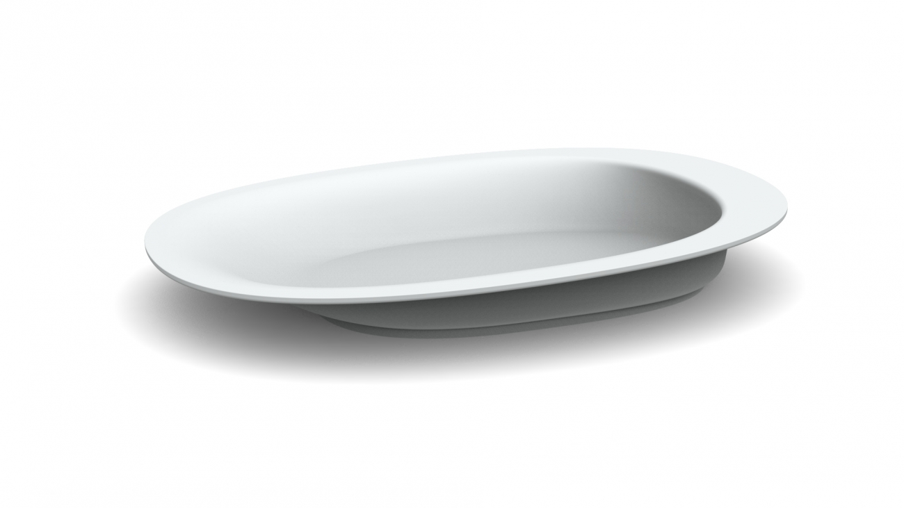 Het Henro bord is gemaakt van wit polypropyleen. Het bord is ovaal met aan één kant een opstaande rand en een afgeronde rand aan de andere kant. Het opscheppen van voedsel wordt hierdoor vergemakkelijkt. Inclusief 4 afneembare dopjes aan de onderkant die het bord stevig op zijn plek houden.
