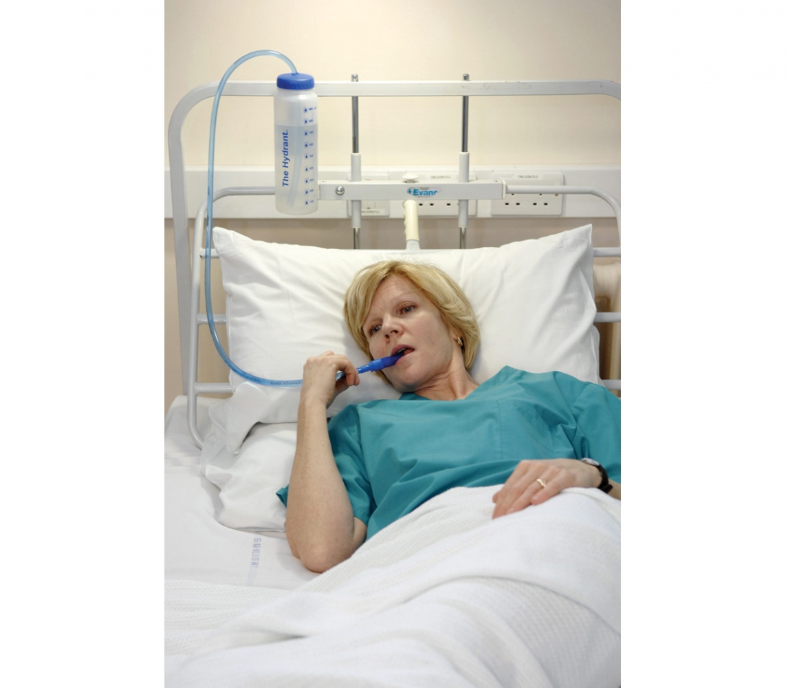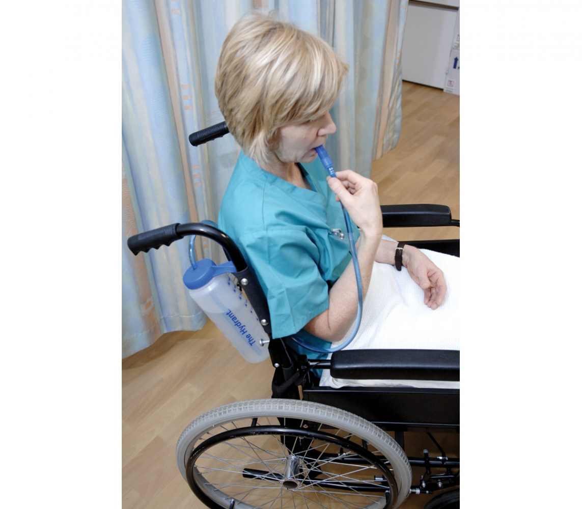Dit product – Hydrant (): Transparante drinkbeker met een flexibele drinkslang. Een eenvoudige manier om te alle tijden toegang te bieden tot vloeistof aan een patiënt. Voorzien van maatvoering en een handige clip om te bevestigen. Niet geschikt voor “hete” vloeistoffen. Wel geschikt voor warme en koude dranken.