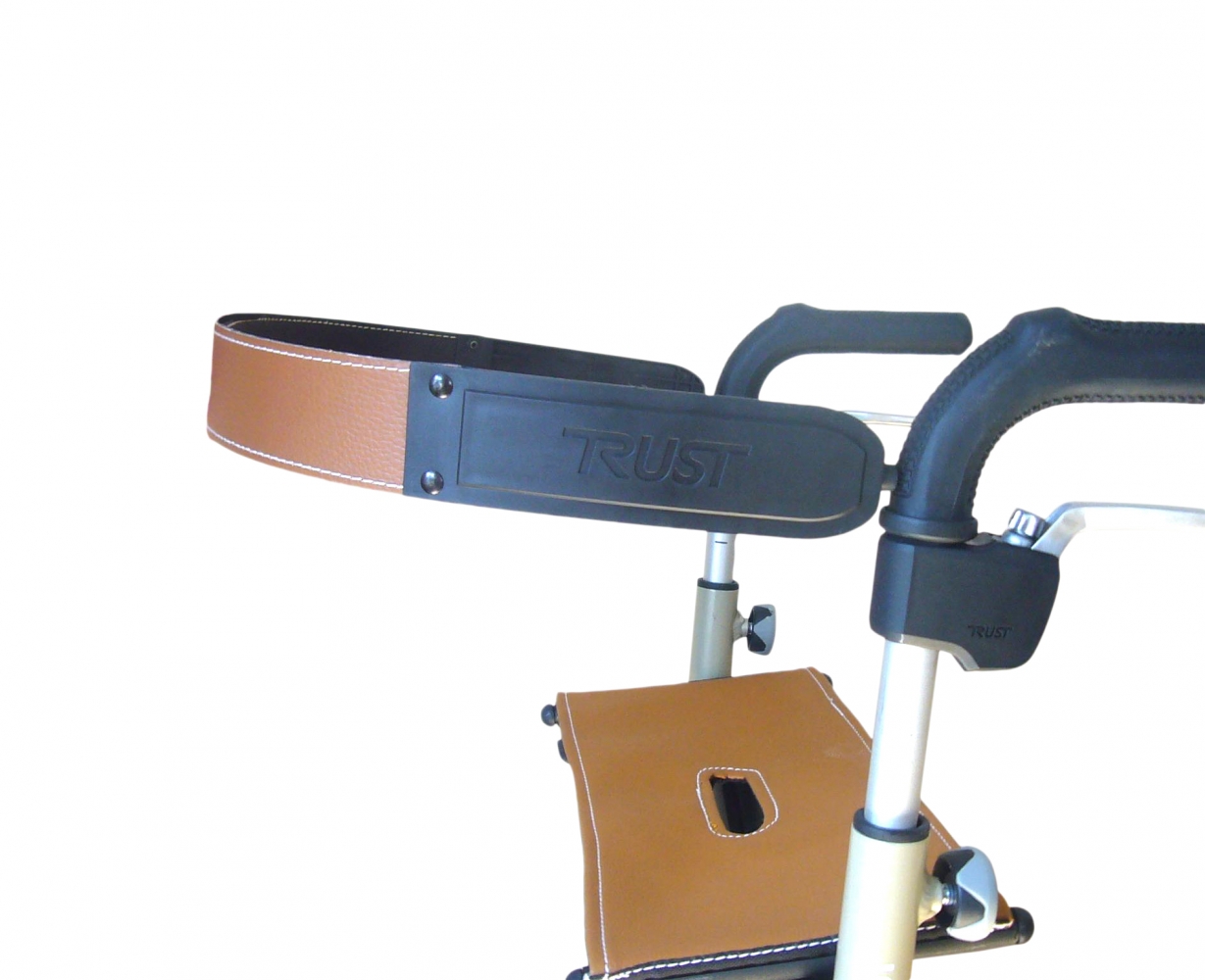 De rugband kan vastgemaakt worden aan de handgrepen van de Let’s Go Out en de Let’s Fly rollator. Dit geeft extra steun en veiligheid bij het zitten. Deze rugleuning is bruin en past hierdoor bij het zitje van de Let’s Go out beige/zilver.