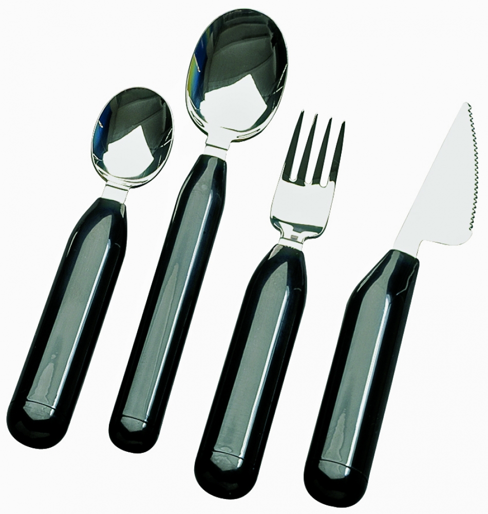 Dit bestek is vooral ontworpen voor mensen met gewrichtsproblemen. Het lichte bestek met dikke steel ontziet de gewrichten en verlaagt de druk op de vingers. De steel biedt verschillende aangrijpmogelijkheden en ligt stevig in de hand. Het snijden van voedsel is altijd het moeilijkst. Het mes is speciaal ontworpen om personen met weinig kracht gemakkelijker te laten snijden. Lengte handvat 11,5 cm, ø 2,5 cm.