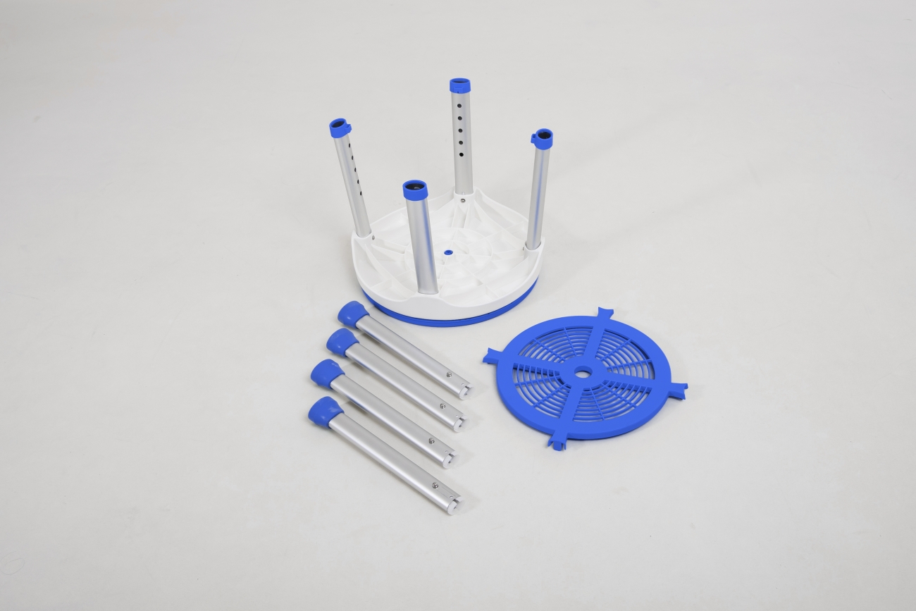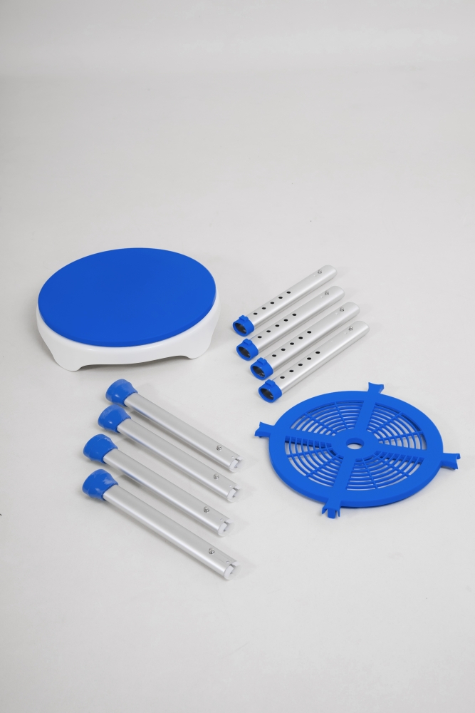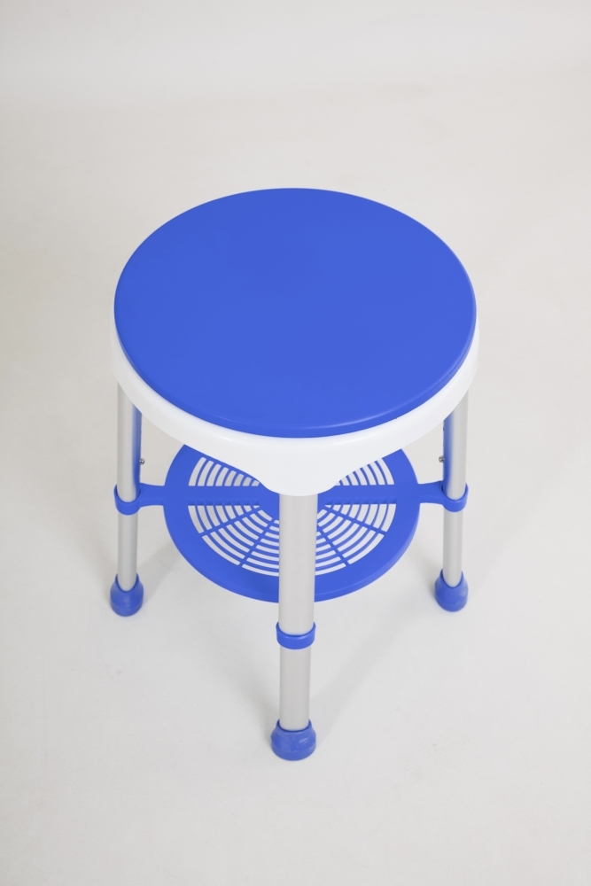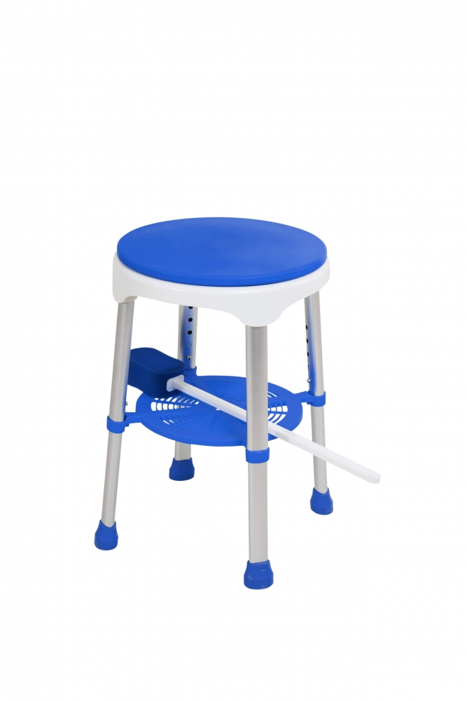 Aluminium douchekruk met een draaibare kunststof zitting. De draaibare zitting maakt een transfer eenvoudiger en zorgt voor extra gemak en comfort bij het douchen. Inclusief handig opbergplateau om uw douchespullen dicht bij de hand te hebben.
