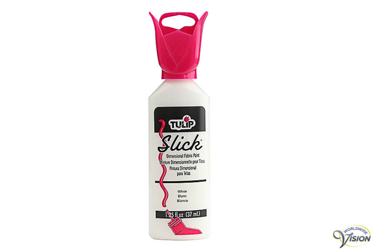 Merkpasta Tulip Slick, penflesje voor het aanbrengen van markeringen, lijnen en vormen op diverse materialen, kleur wit.
