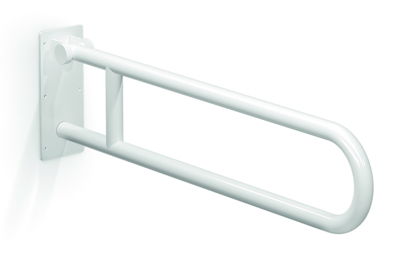Deze sterke toiletbeugel is gemaakt van roestvrijstaal en voorzien van een witte poedercoating. Eenvoudig omhoog te klappen. Verkrijgbaar in drie verschillende lengtes: 60, 72,5 en 85 cm. De bijbehorende montageset, papierrolhouder en vloersteunen zijn los verkrijgbaar.