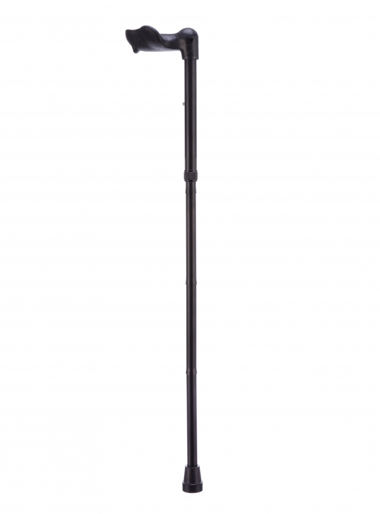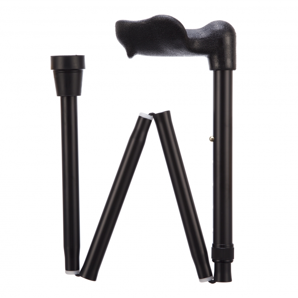 Opvouwbare aluminium wandelstok met groot anatomisch voorgevormd handvat voor ondersteuning van de handpalm. Geschikt voor reumatische klachten. Eenvoudig op te vouwen en op te bergen in bijgeleverde plastic hoes. Inclusief plastic clip.