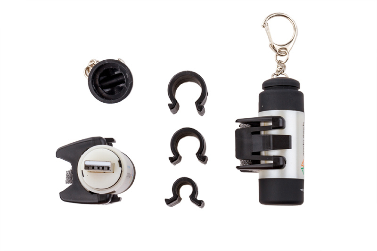 Het stoklampje Pharos, in de vorm van een sleutelhanger, kan op diverse Ambutech herkennings-, tast- en wandelstokken geklemd worden. Wordt geleverd met drie verschillende bevestigingsclips voor diverse stokdiameters. Eenvoudig te gebruiken middels de aan/uit-schakelaar. Waterbestendig. Inclusief accu met oplaadtijd van ongeveer 45 minuten. Oplaadbaar via de USB connector. Gebruikersduur 45 minuten.