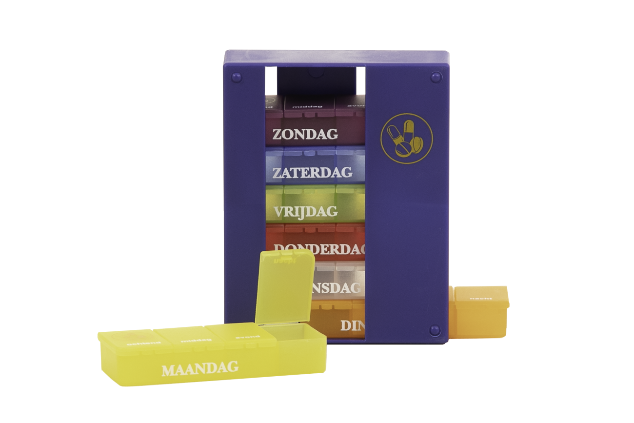 Met de pillenbox 1 week houdt u overzicht over pillen en tabletten die u of iemand anders moet innemen in een bepaalde periode. De pillenbox heeft 7 dagdoosjes voor de zeven dagen van de week. Ieder dagdoosje heeft een aantal vakjes voor bepaalde tijdstippen. Er zijn twee verschillende modellen: 4- vaks en 3-vaks.