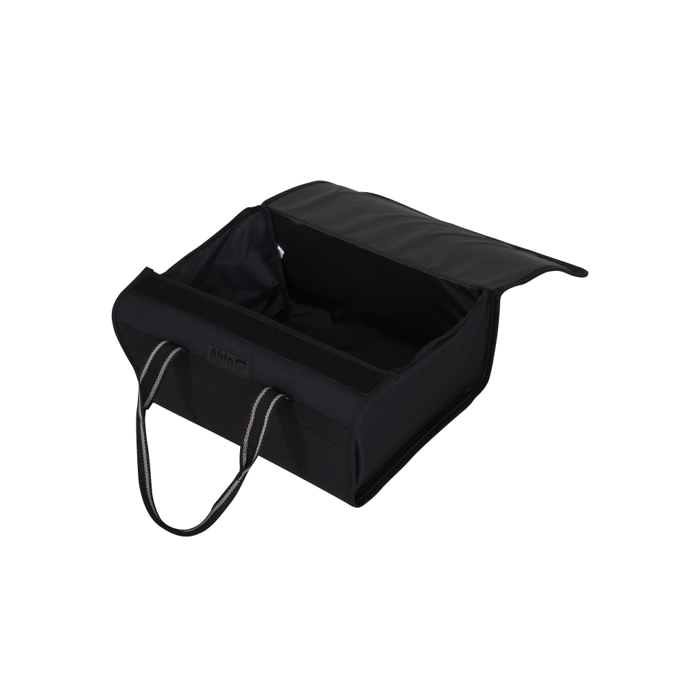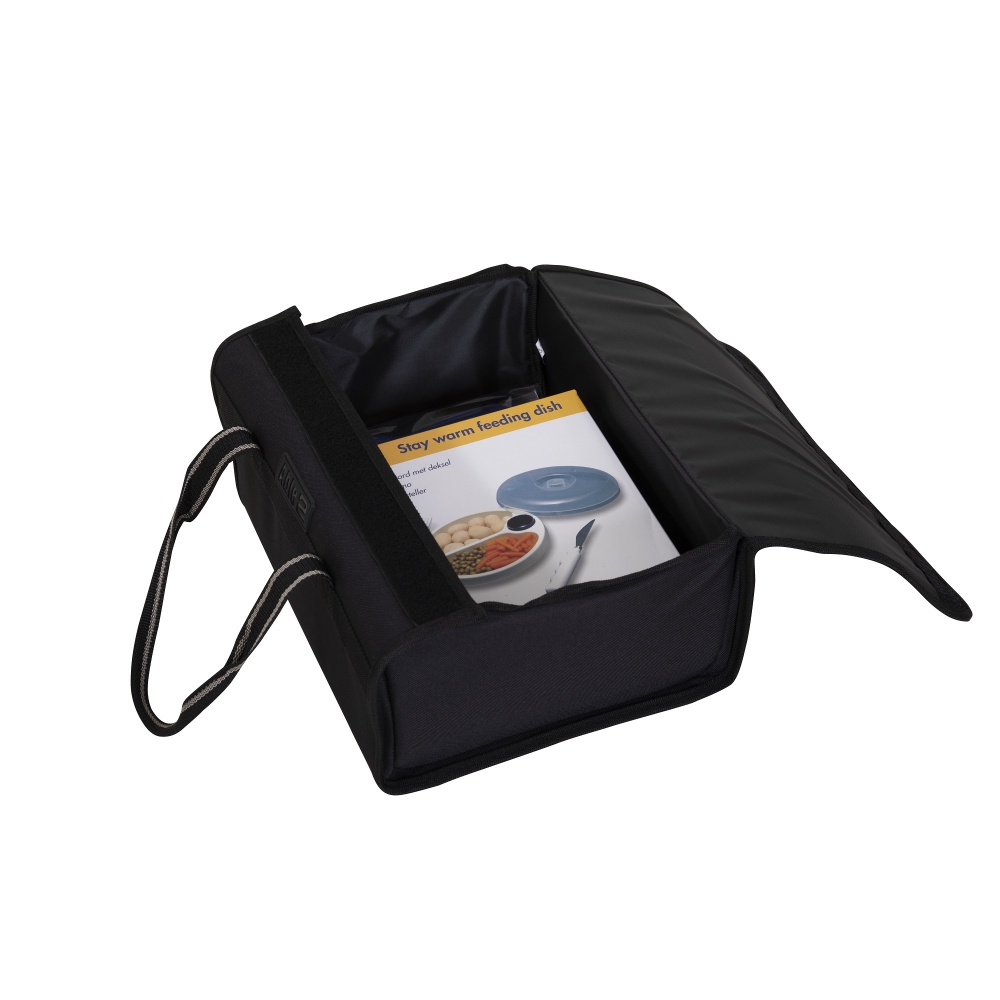 Deze handige Splash rollatortas plaatst u eenvoudig in het metalen rechthoekige mandje van een standaard rollator. Ideaal om boodschappen droog en onzichtbaar mee te nemen. Door de twee hengsels is de tas gemakkelijk mee te nemen. De tas heeft één groot hoofdvak en sluit af met een stevige klittenbandsluiting. Gemaakt van polyester. Kleur zwart.