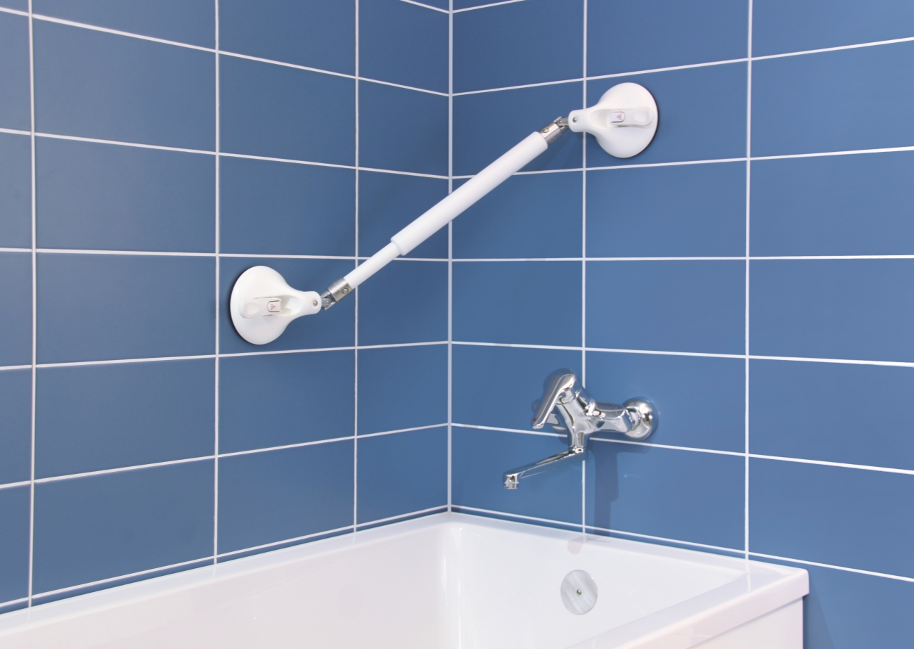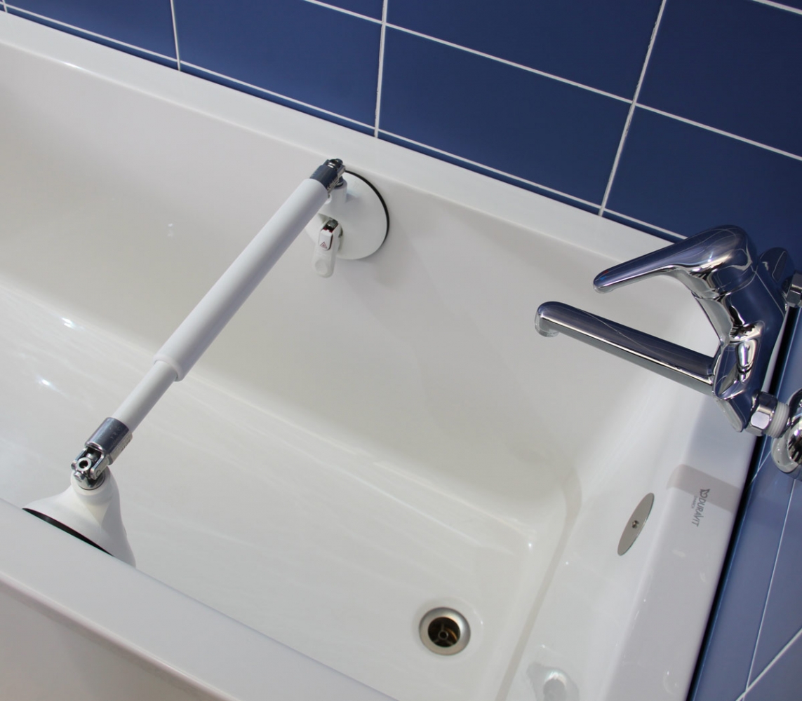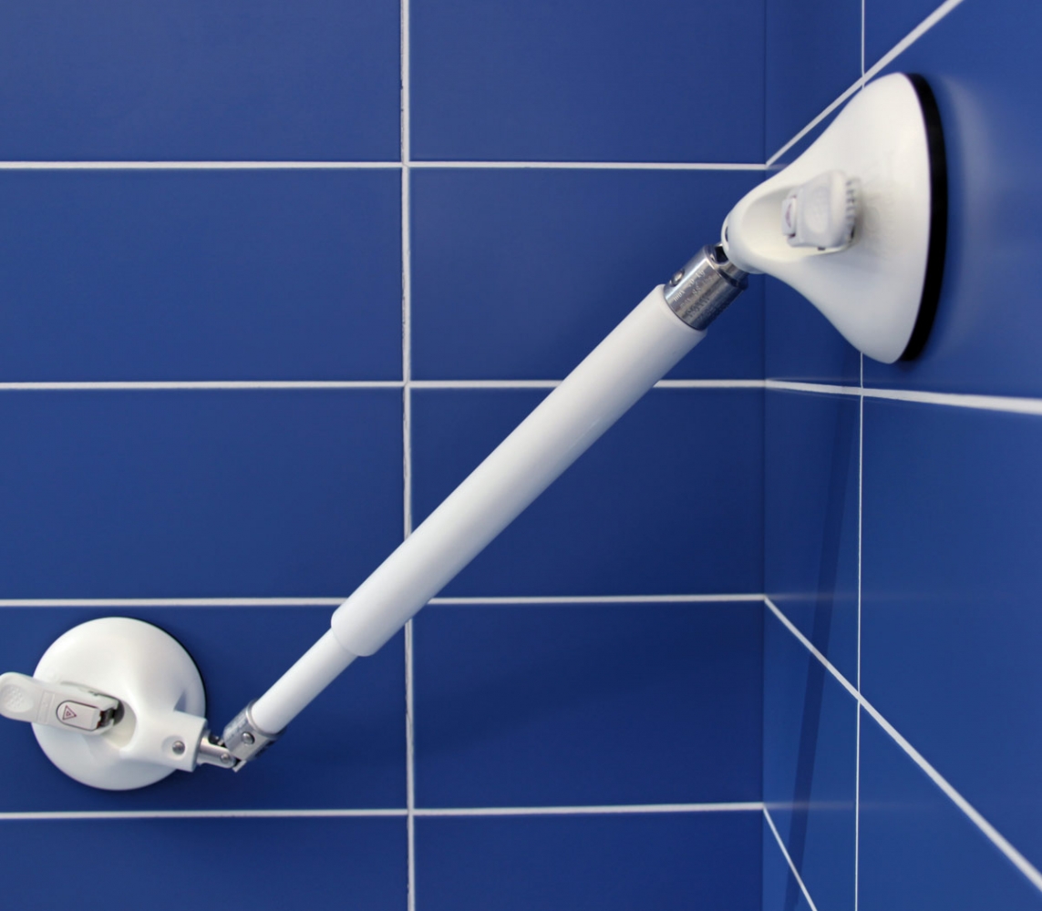 Het toepassingsgebied van alle mobiele verstelbare beugels kunt u eenvoudig uitbreiden, wanneer de scharnieren tussen de zuignap en grijpstang worden ingevoegd. Daardoor zijn de meest uiteenlopende hoeken bereikbaar en wordt er een maximum aan flexibiliteit bij het positioneren gerealiseerd. Bijvoorbeeld een beugel aan de binnenkant van het bad.