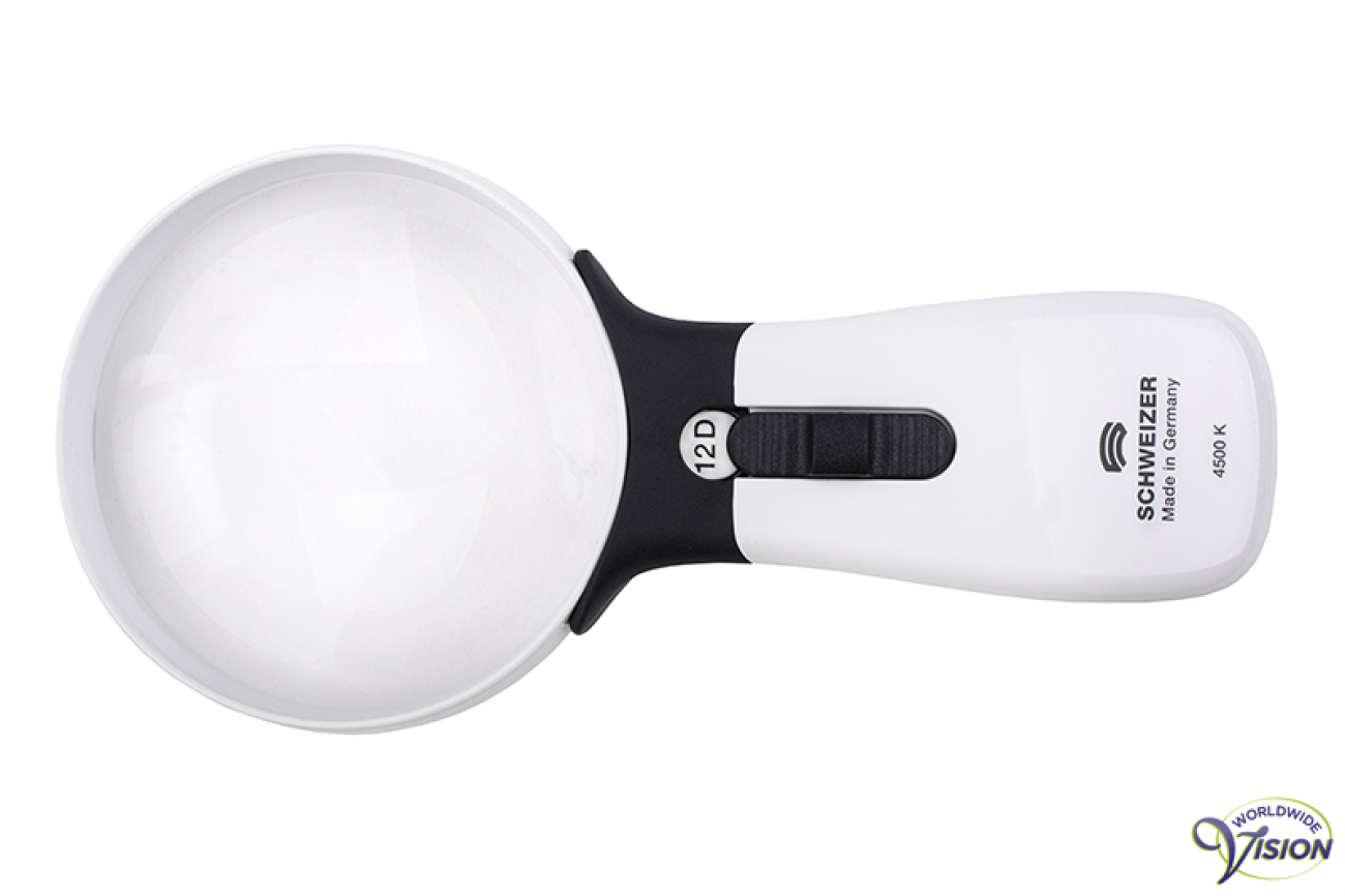 Schweizer ERGO-Lux MP Mobile LED 164122 12D draagbare lifestyle handlichtloep met SMD LED-verlichting van 4500 K en twee lichtintensiteiten, asferische lens van 70 mm, vergroot 3 maal, kleur wit/donkergrijs, incl. bescherm-/schoonmaakhoesje, excl. 3 AAA batterijen.