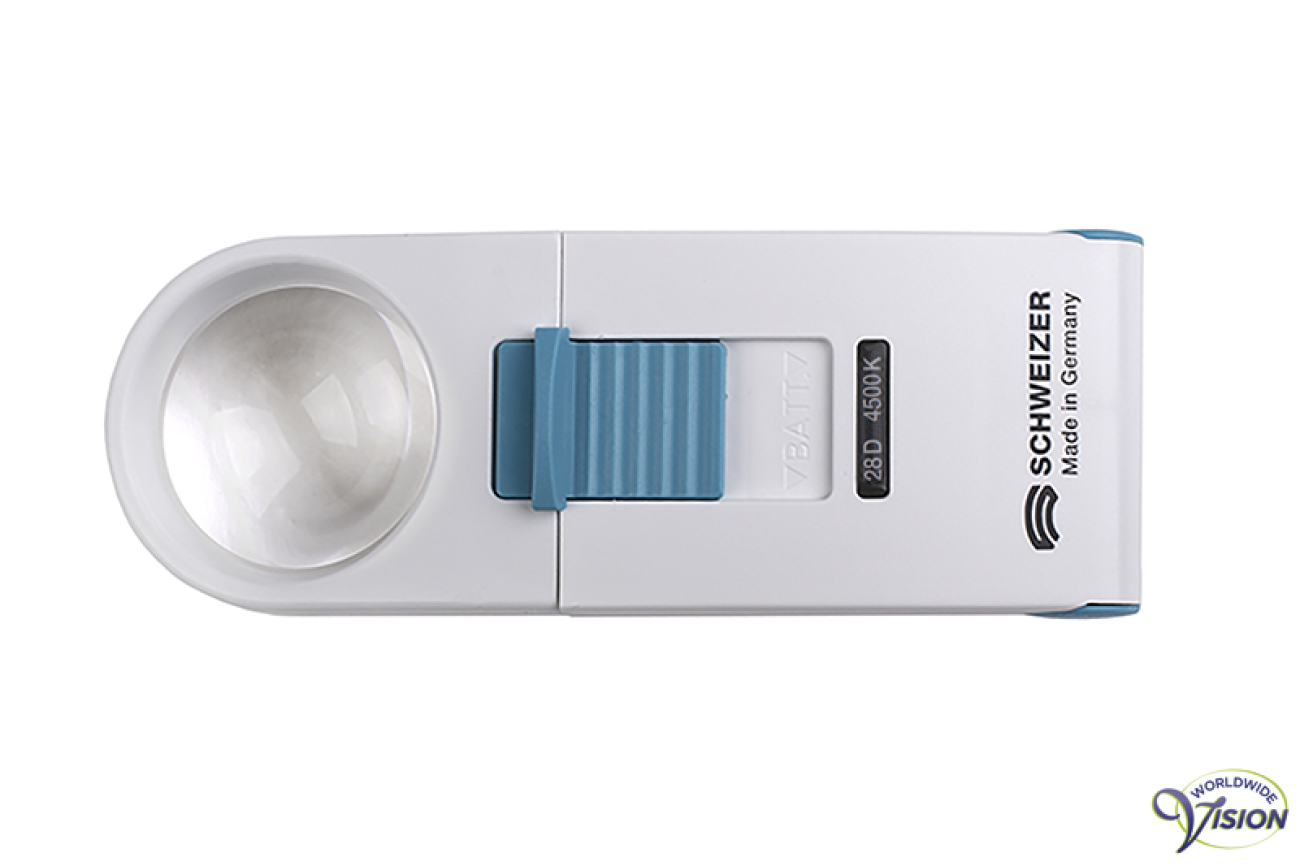 Schweizer Ökolux+ Mobile LED 134282 28D, compacte handlichtloep met SMD LED-verlichting van 4500 K en asferische lens van 35 mm, vergroot 7 maal, kleur wit, incl. bescherm-/schoonmaakhoesje, excl. 3 AAA batterijen. Zeer licht en makkelijk mee te nemen.