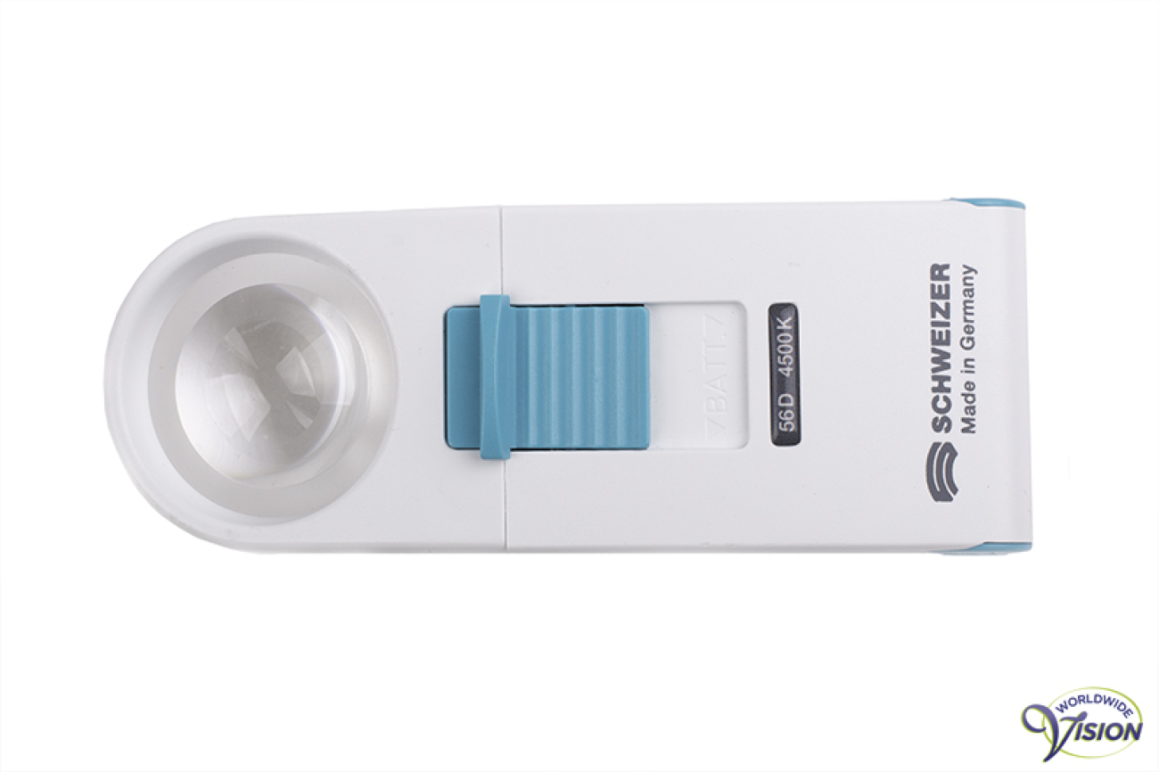 Schweizer Ökolux+ Mobile LED 134562 56D, compacte handlichtloep met SMD LED-verlichting van 4500 K en asferische lens van 35 mm (optisch 27), vergroot 14 maal,kleur wit, incl. bescherm-/schoonmaakhoesje, excl. 3 AAA batterijen.Zeer licht en makkelijk mee te nemen.