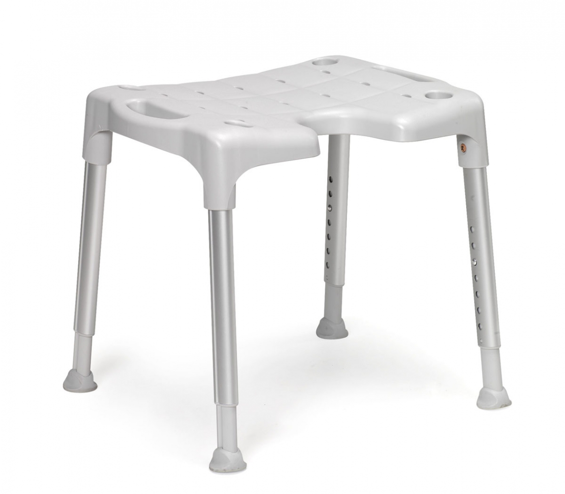 Een lichtgewicht aluminium douchekruk met antislip zitting. De Swift is een robuust ontwerp, dat gemakkelijk aan verschillende behoeften kan worden aangepast. Eenvoudig uit elkaar te halen en op te bergen. In hoogte verstelbaar. Ook verkrijgbaar met armsteunen en als complete douchestoel. Ook in de kleur groen verkrijgbaar. In hoogte verstelbaar van 42 -57 cm. B 54 x D 50 cm.