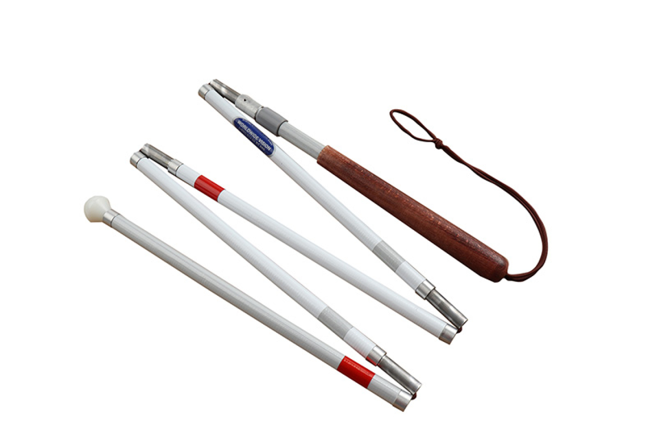 Svarovsky taststok gemaakt van aluminium met ronde, kunststof punt van 25 mm. Zeer licht van gewicht. Voorzien van witte en rode reflectie bandjes. Afgeplat beukenhouten handvat met draaiklemmechanisme. Opvouwbaar in vijf delen en gedeeltelijk telescopisch uitschuifbaar. Inclusief opbergetui.
