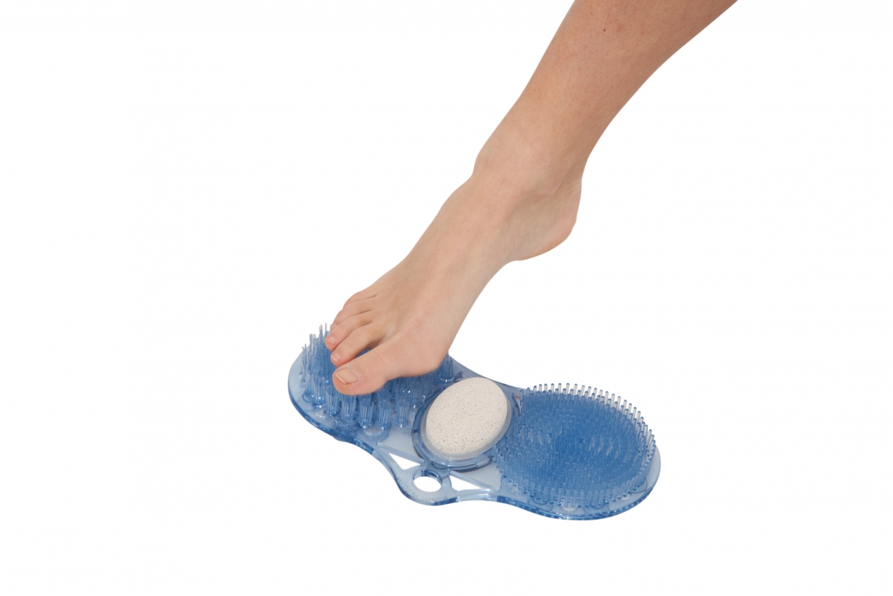 Was uw voeten zonder naar voren te hoeven buigen. Te gebruiken in bad of douche en vast te zetten met de zuignapjes. Gebruik de puimsteen om uw voeten te scrubben.
